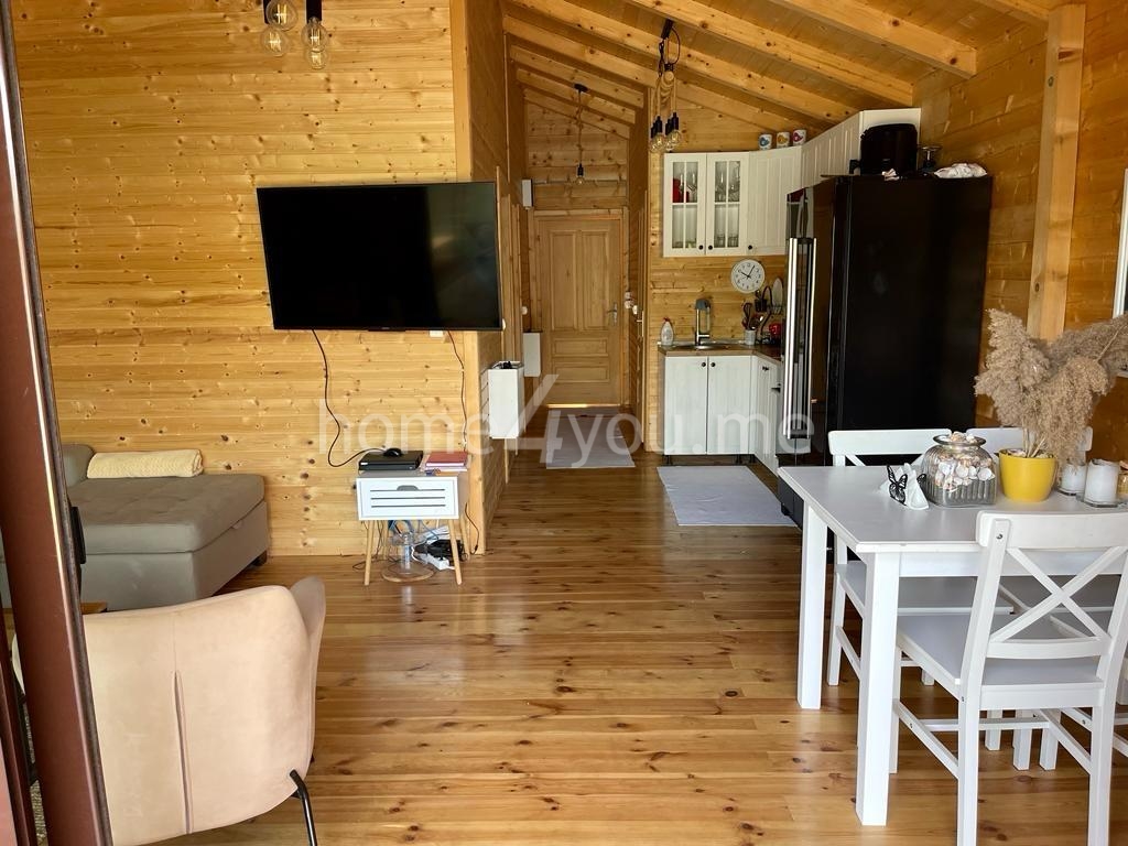 The house has a total area of 60m² and is designed to provide a functional and comfortable living space. It consists of a living room, kitchen, two bedrooms, a bathroom, and a terrace with an open view of the river and the surrounding nature.