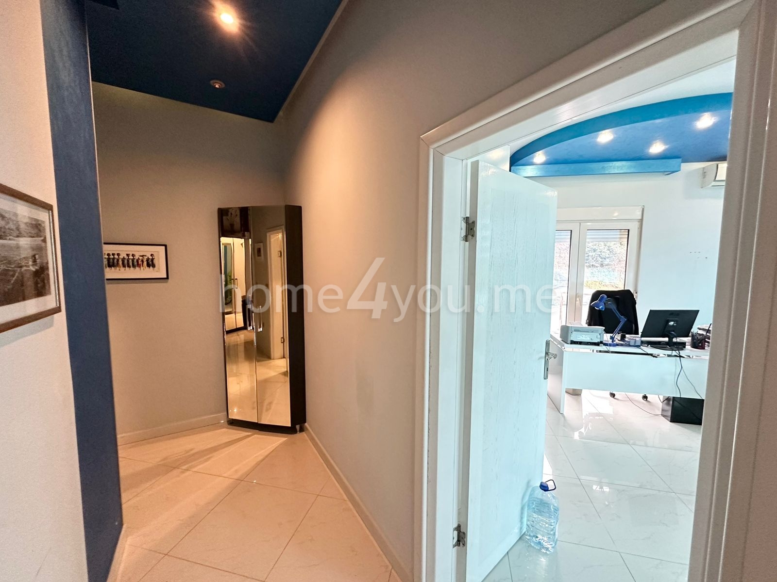 The apartment is unfurnished, previously used as an office, and is suitable both for business purposes and family living. A garage parking space is included in the price.