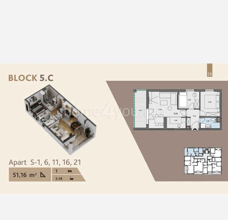The apartment is located in Lamella C of a luxury complex, only 500 m from the beach.