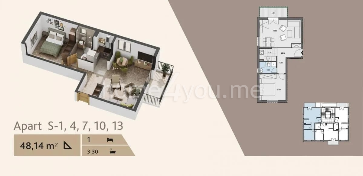 Predstavljamo Vam dva jednosobna stana na parceli br 5 gdje je planirana izgradnja 64 stambenie jedinice ukupne površine 3.360 m² i 12 poslovnih prostora ukupne površine 720 m² podijeljenih u tri lamele A, B i C.